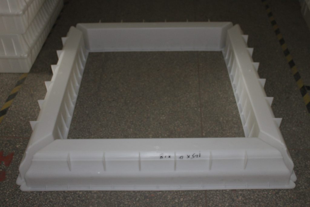 此款水泥樹池磚模具采用的是PP聚丙烯塑料,一體成型,四個拼合為一組,正好呈正方形樹池環境。這種結構的樹池一般用在較為粗壯的樹木周圍,可容樹木直徑較為寬松,如果樹木較小,一般建議采用其他圍樹結構,比如太陽型樹池結構,更大的覆蓋面積對于小型樹木的保護相對有利。