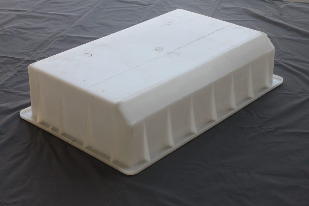 其中,水泥馬路牙子模具采用高韌性的聚丙烯塑料注塑加工而來,鑒于水泥澆筑對于模具承重的不同,在馬路牙子模具四周分別布置粗細(xì)不一的加強(qiáng)筋結(jié)構(gòu)。整體呈倒角防撞型設(shè)計,有效避免水泥馬路牙子由于直接鋒利結(jié)構(gòu)滑坡汽車輪胎等不利安全的因素。