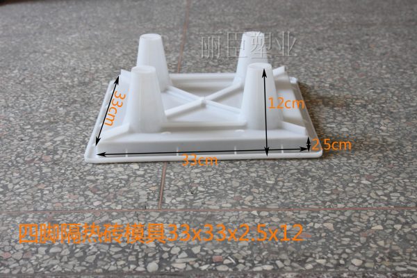 四腳隔熱磚模具澆筑成型的水泥砼制品的使用能有效對于房屋屋面進行有效的隔熱,采用隔熱磚來作為屋面的隔熱層比在屋面上采用鋪土來的要效果強烈些。