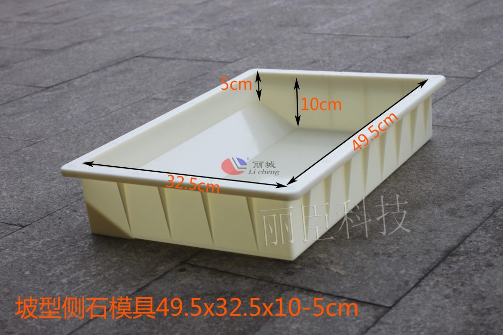 坡型側石塑料模具的生產大多采用PP聚丙烯材質來作為主要生產原料,這款坡型側石模具在生產上采用韌性較強的ABS材質來作為主要生產原料。