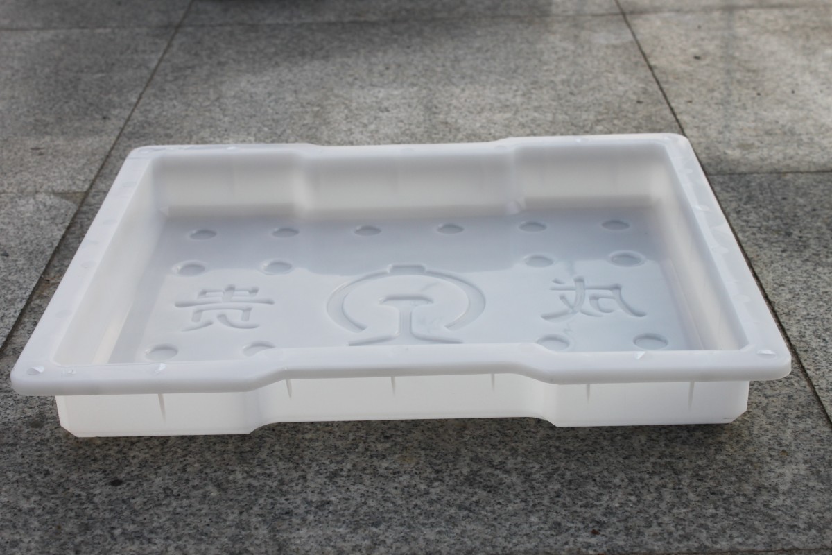 成貴高鐵線專用水泥鐵路溝蓋板模具,使用全新PP聚丙烯材料以注塑工藝一體成型。溝蓋板模具表面設計有:圓點、鐵路圖標及“成貴”2字標示,主要應用在成貴高鐵專線水泥溝槽蓋板預制。