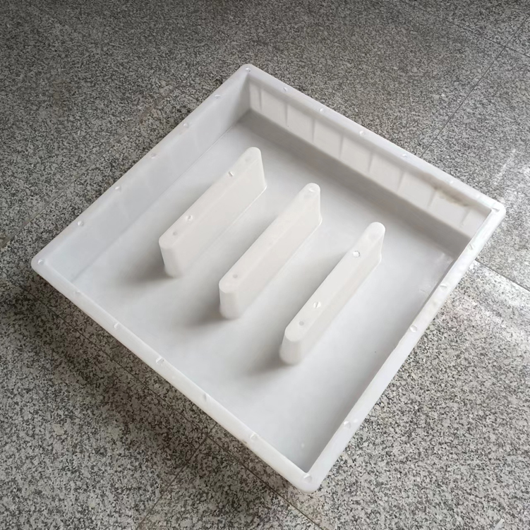 三孔雨水蓖塑料模具,模具采用米白色PP材質制成,模具尺寸為60cm*60cm*11cm,模具開始設計尺寸為60cm*60cm*10cn,因為需要充分達標,所以模具厚度尺寸實際尺寸比設計尺寸厚1cm,模具采用三孔設計,具體尺寸如下設計圖。主要用于道路下水使用,且厚度厚,可以承載較大的壓力。