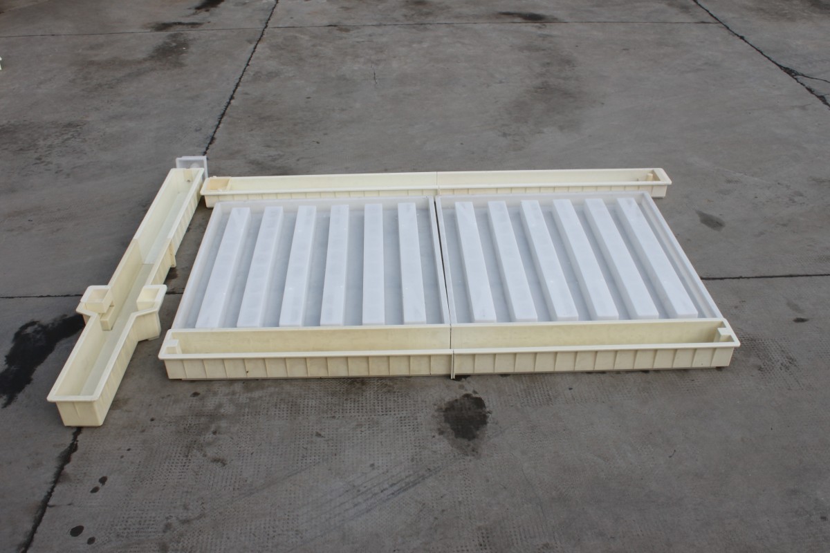 3.路基防護柵欄欄片模具則采用的的PP聚丙烯塑料材質,在整套路基防護柵欄模具中共由2塊組成,尺寸為149.5*140.5*9cm。關于欄片模具為何也不采用ABS塑料來制作,主要原因就是欄片自身面積太大,而ABS材質的特性為密碼高,強度大,但是韌性不是很好,在實際操作過程中相對更為容易損壞,所以具備高韌性的PP聚丙烯材質更為適合。
